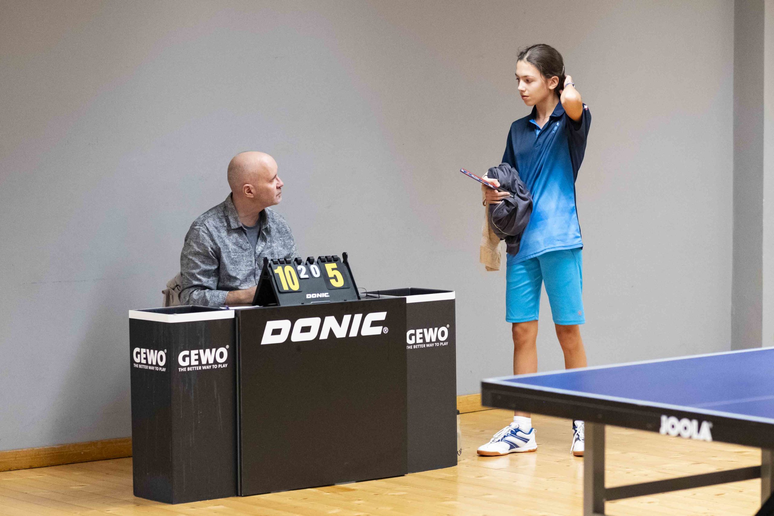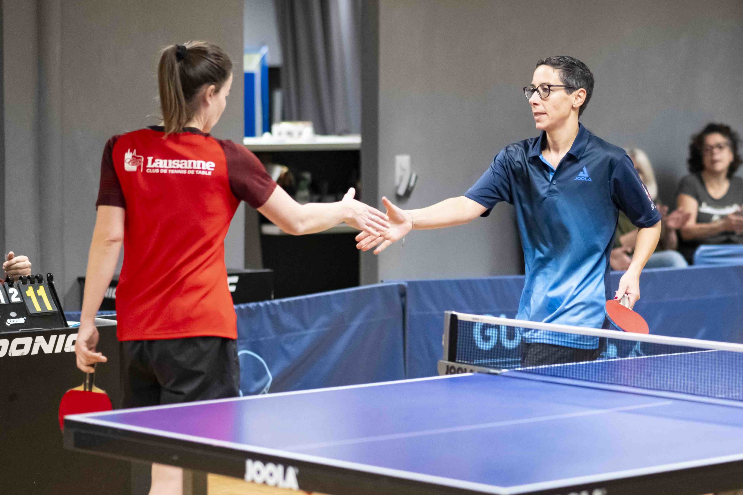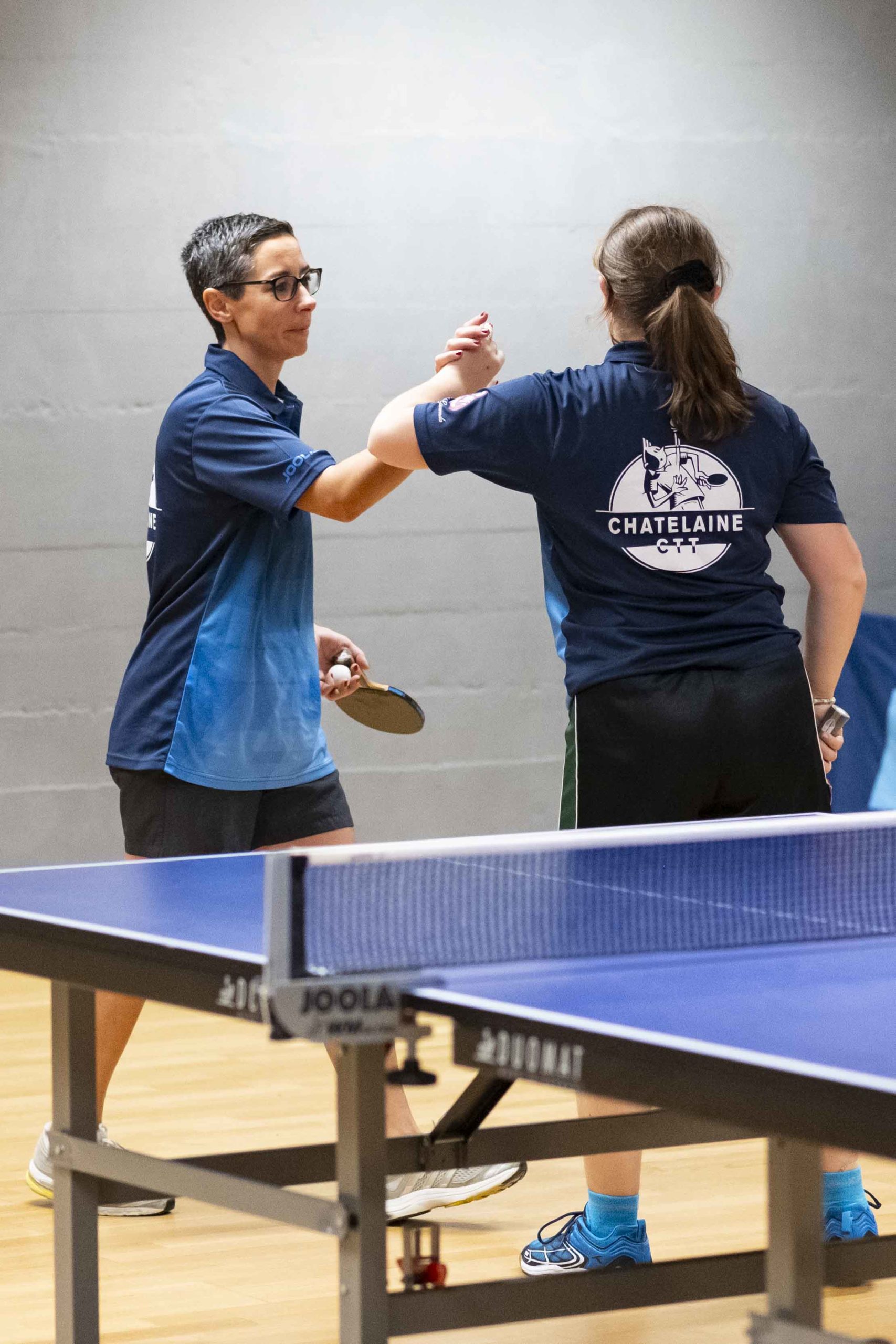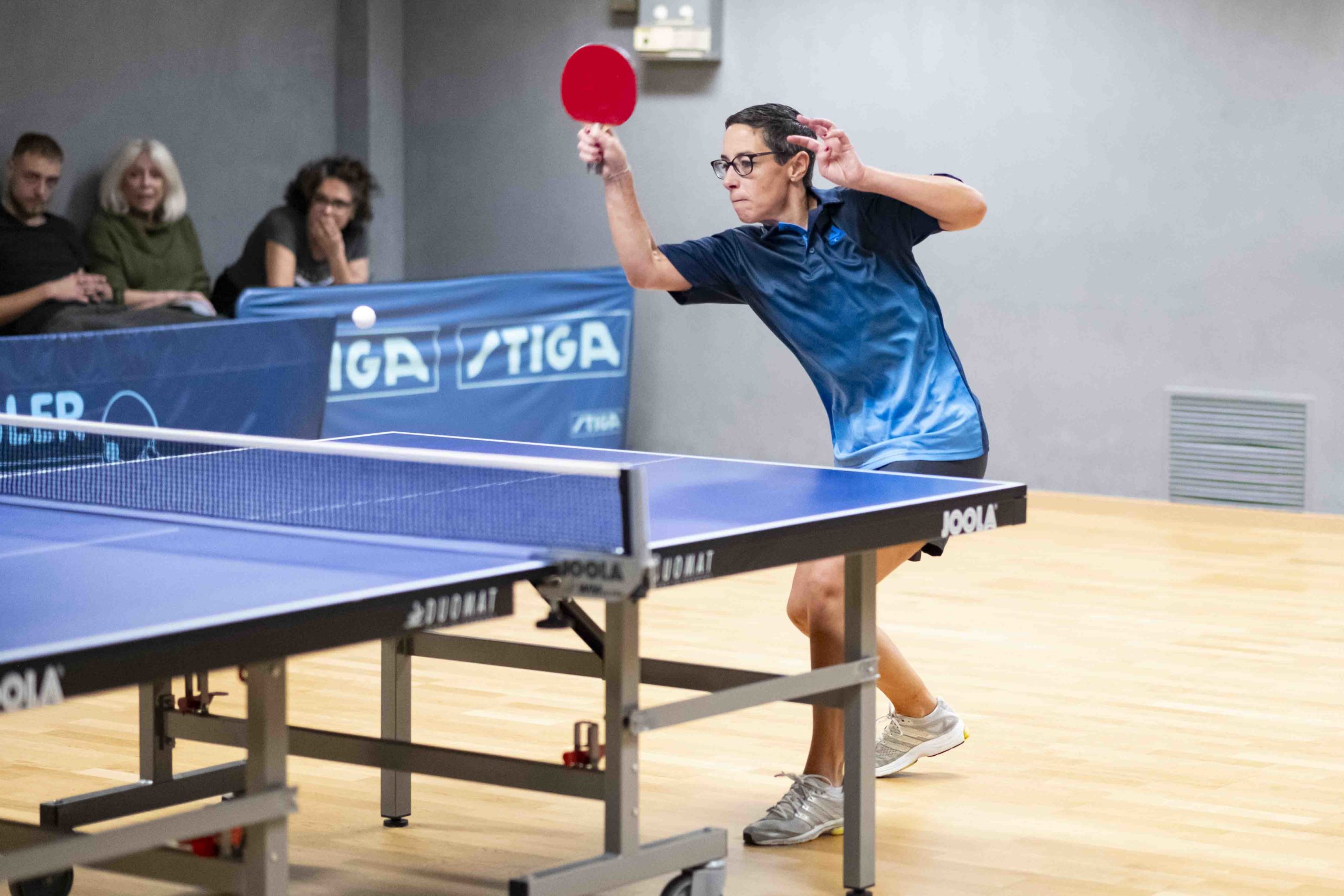Félicitations à Livia qui réussit à gagner 2 matchs et le double. Virginie, doyenne de l’équipe, mais toujours aussi positive et sympathique, finit avec 1 victoire et le double. Élodie passe à un cheveu d’une belle perf lors de son dernier match en menant 9-5 au 5e set avant de s’incliner 9-11.