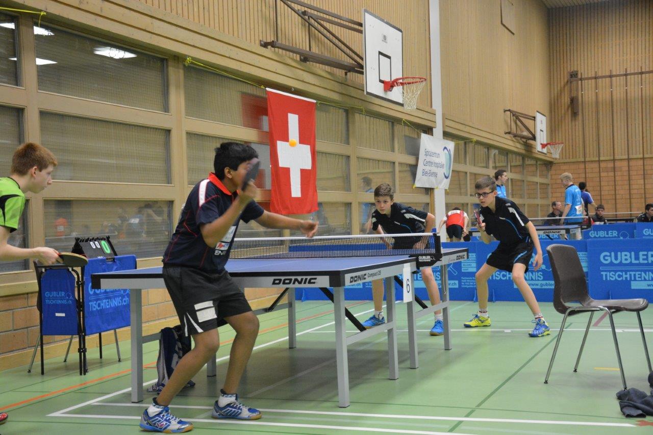 La compétition débuta fort bien pour notre club avec les doubles garçons. L'exploit est venu de l'équipe composée de Bastien POUJOULAT et Braden HASLER (Meyrin), qui a triomphé après une lutte acharnée contre les têtes de série numéro 2. Cette victoire leur a offert le droit de disputer une demi-finale contre l'autre équipe du club un peu trop forte. Ils obtinrent finalement une belle médaille de bronze.