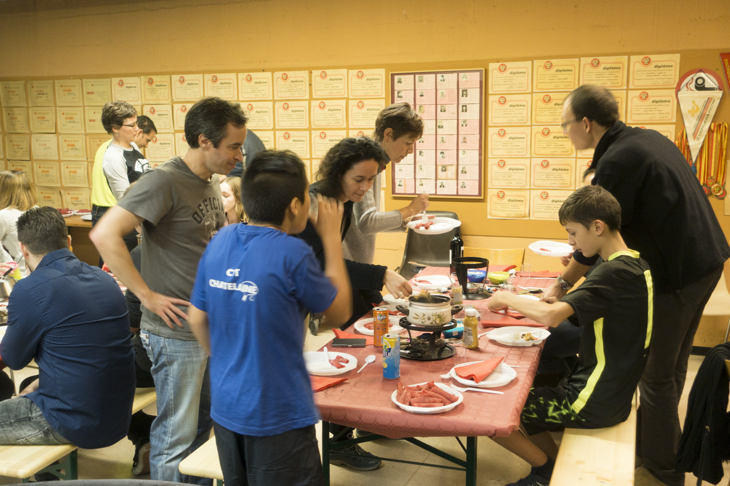 Cette année, une quarantaine de personnes étaient présentes à notre traditionnelle fête de l'escalade. Elle se déroula comme d'habitude dans la bonne humeur et dans une ambiance conviviale. Tout le monde a pu une fois de plus profiter de l'excellent bouillon fait maison par la famille Besse, même si quelques soucis de réchauds se sont immiscés! Merci aux Besse!
