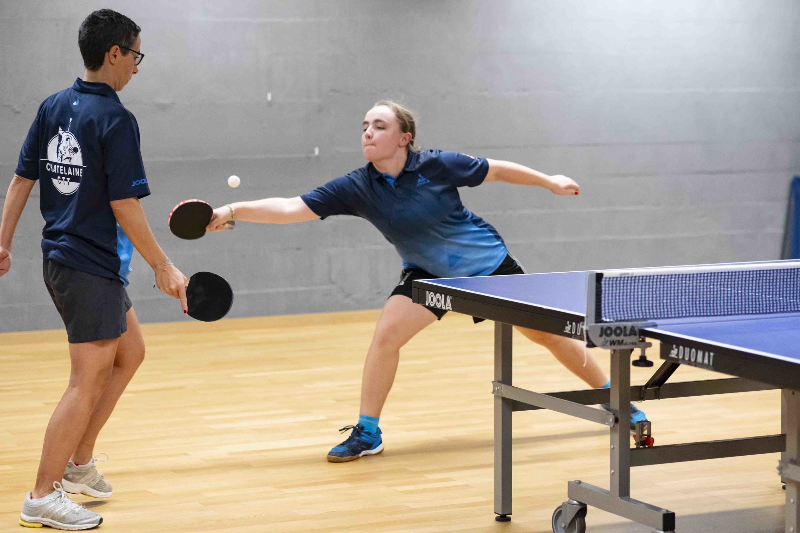Félicitations à Livia qui réussit à gagner 2 matchs et le double. Virginie, doyenne de l’équipe, mais toujours aussi positive et sympathique, finit avec 1 victoire et le double. Élodie passe à un cheveu d’une belle perf lors de son dernier match en menant 9-5 au 5e set avant de s’incliner 9-11.
