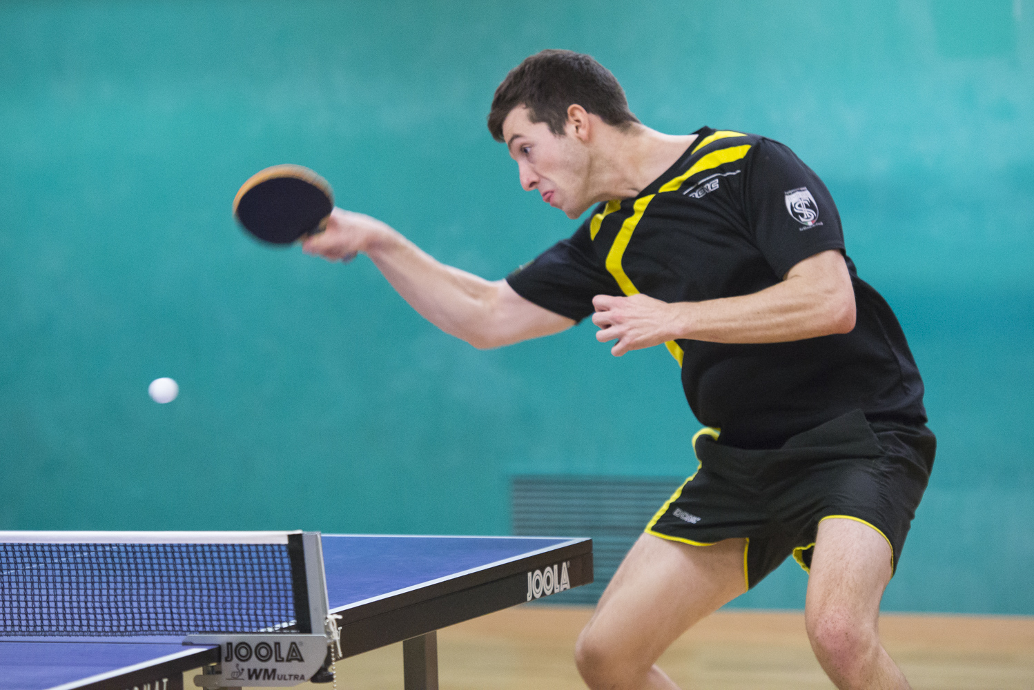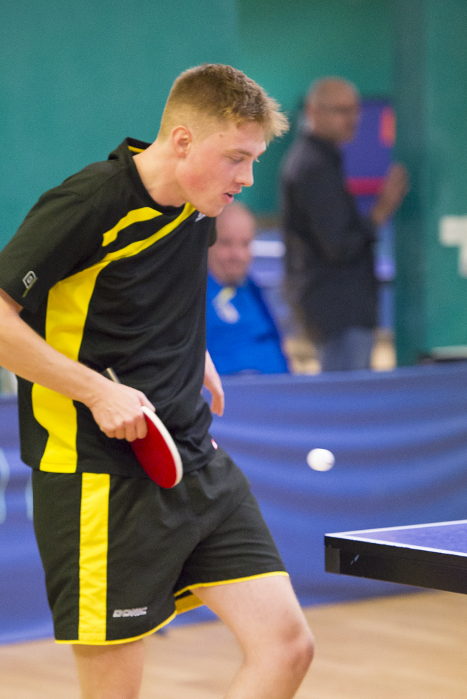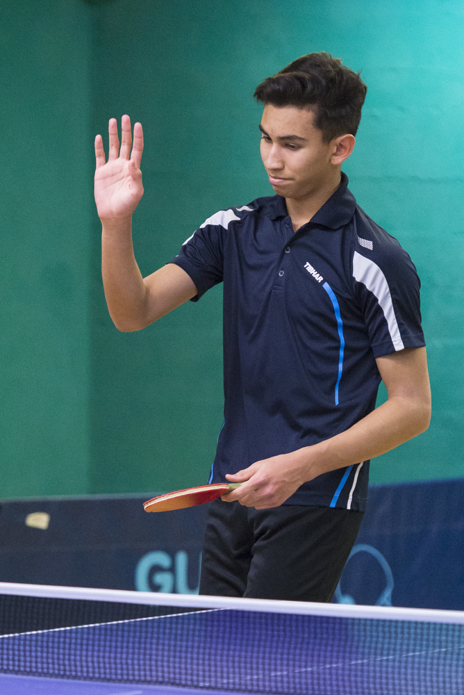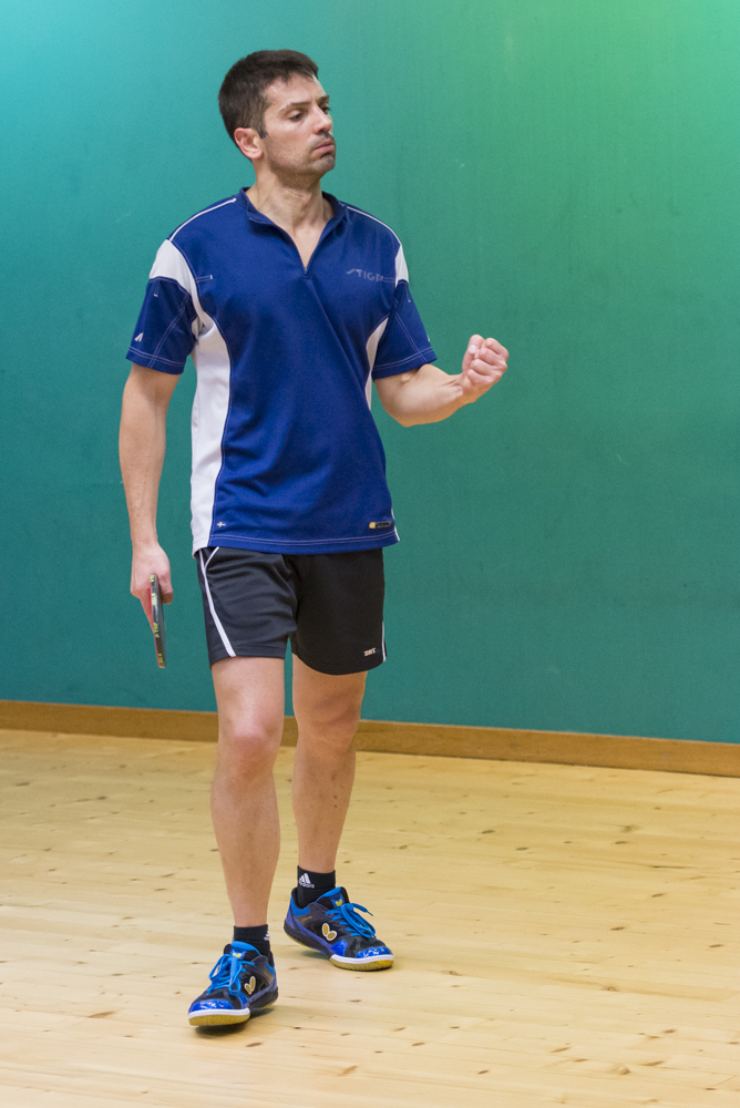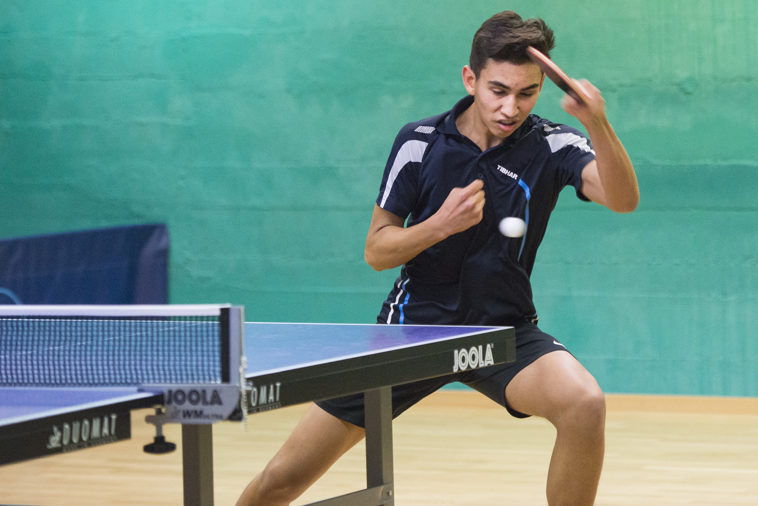 Braden Hasler confirme encore une fois qu’il a définitivement passé un cap, tant quant à son niveau de jeu qu’à son mental : son classement actuel de B13 n’est qu’un leurre ! Il n’est en effet pas loin de créer l’exploit contre Cédric Shaffter, un sacré client (A17) : il menait 2-0 5-0, avant de se faire coiffer sur le fil et de perdre en 5 manches, non sans avoir démérité et en forçant l’as de La-Chaux-de-Fond à puiser dans ses ressources. Toutefois, et c’est la preuve de la sérénité qui habite maintenant notre jeune champion, cette défaite qui aurait pu être rageante ne l’a pas empêché de s’imposer avec une relative aisance face à Dominique Benoît et Torne Tänzer, tous deux B15. Bravo Braden !