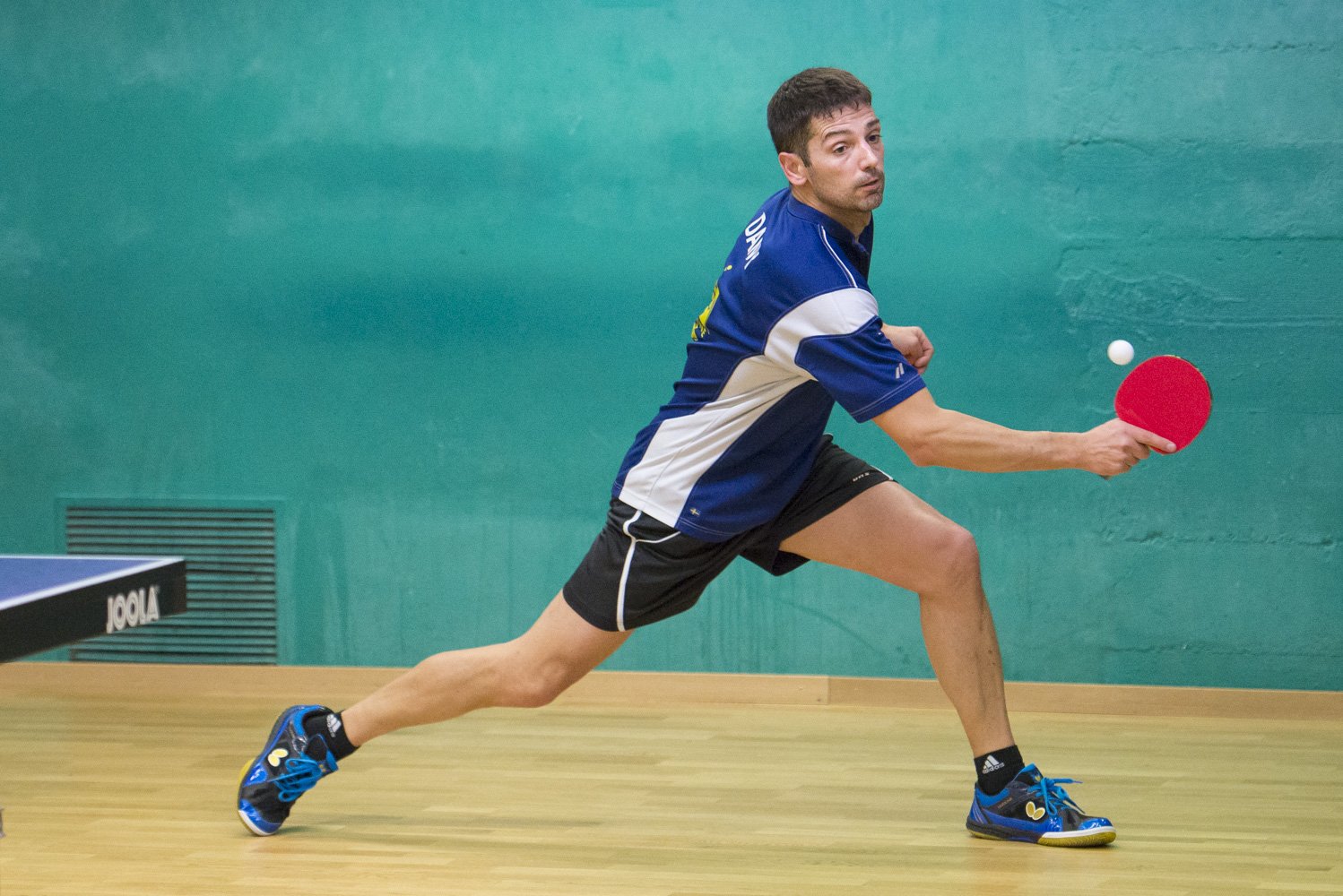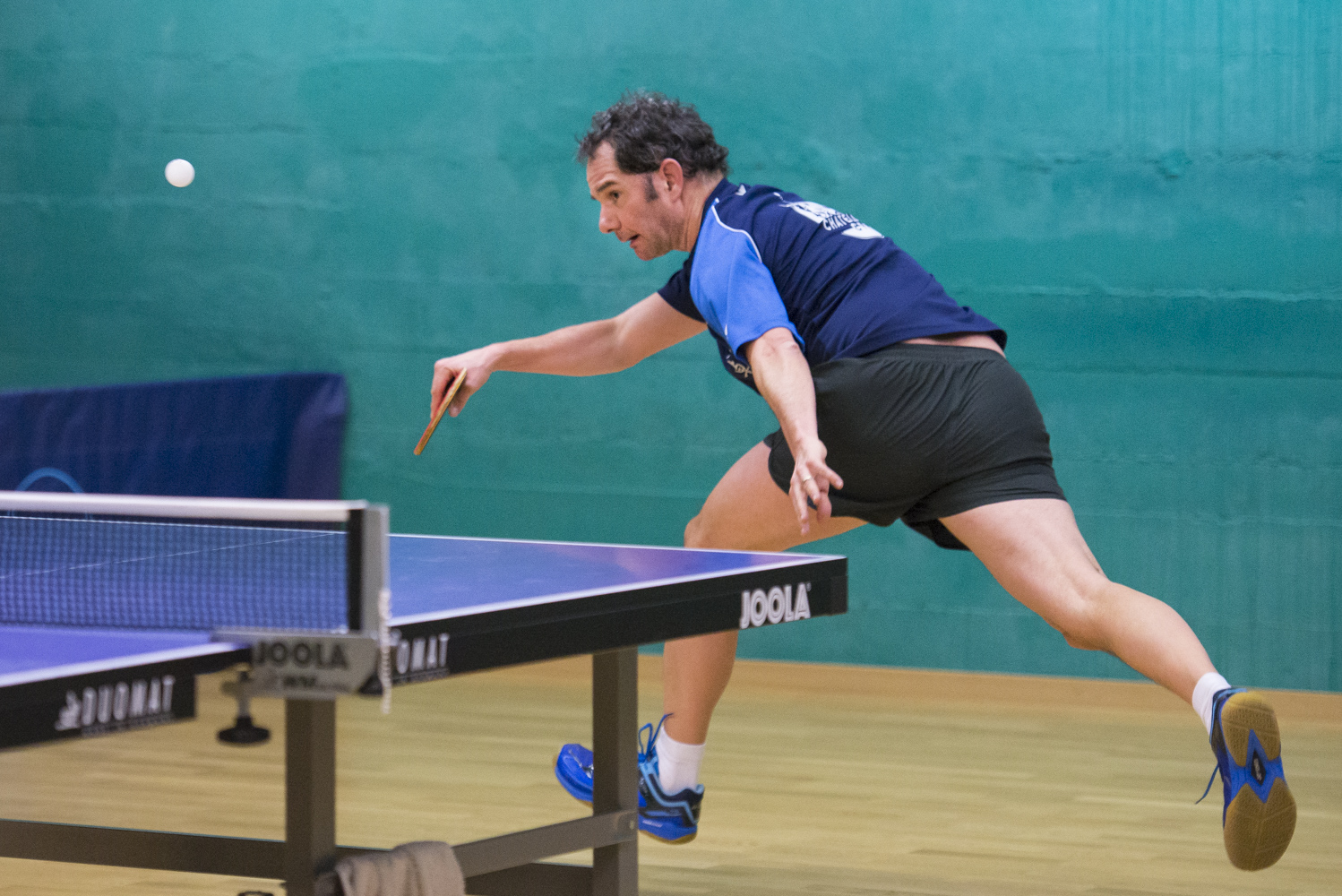 Le soussigné Daniel Loureiro, enfin, a été l’homme fort de la soirée : très affûté, il ne fait qu’une bouchée (ou plutôt : deux) de Benoît et Tänzer, puis, après le double, affronte l’homme fort de l’équipe adverse, le redoutable Cédric Shaffter. Et le « Chien » de dérouler un de ses meilleurs matchs de la saison : défense de fer, variations d’effet diaboliques, et score final révélateur de 12-10/11-5/11-3 ! Et le rédacteur de ces lignes de se demander si ce n’était pas la première fois qu’il passait une soirée de LNC sans perdre un seul set… 😊
