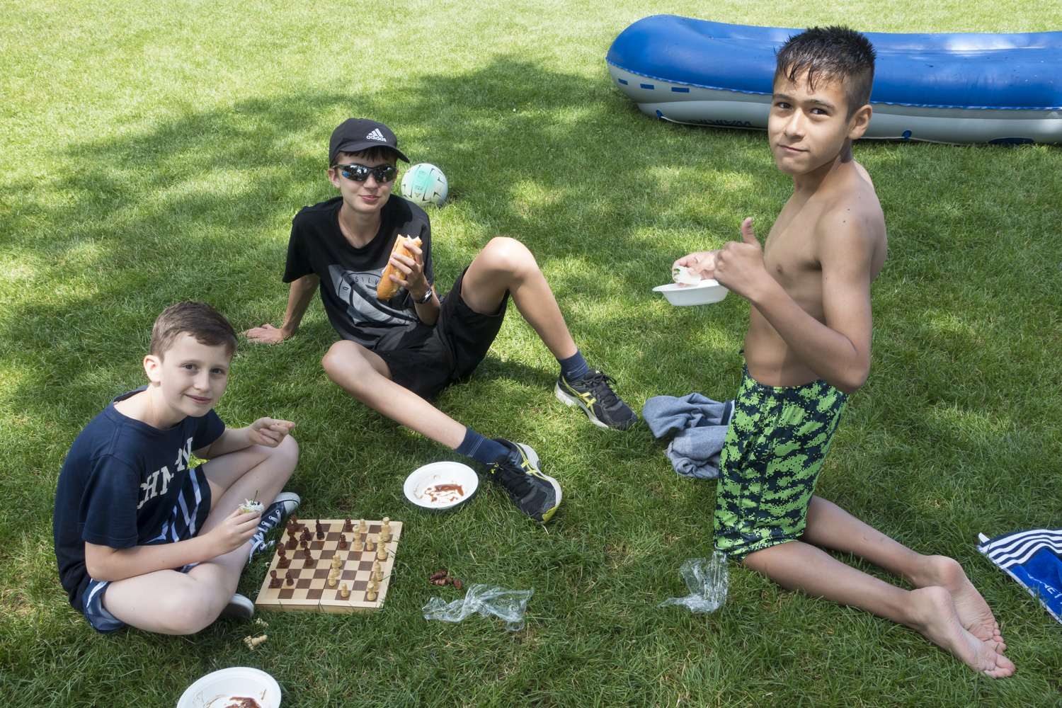 Notre traditionnel pique-nique à Port Choiseul s'est déroulé de manière très agréable avec un temps inespéré à la vue des dernières semaines. Petit tour en bateau pneumatique grâce à la famille Doutaz, partie de pétanque grâce aux boules (de pétanque…) de Pietro et Stéphane, échecs, jeux de ballon, bref, beaucoup d'activités cette année !